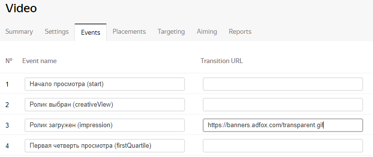 Specify the link to the video uploaded to a third-party hosting or upload the file. Video files that you upload directly to the Adfox interface are automatically converted to different formats and sizes and saved to the Yandex video hosting. After the video is uploaded, the banner has the status <paused> until the conversion is complete. After conversion, the video status changes to <converted>, and the banner status changes to the one that was before you uploaded the video: <active> or <paused>. If you specify a link to a video posted on an external resource, the video won't be downloaded and converted. In that case, the video will be displayed in the banner directly from the specified external resource in the form in which it's available via the specified link. |