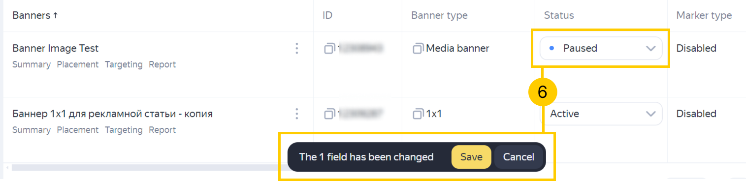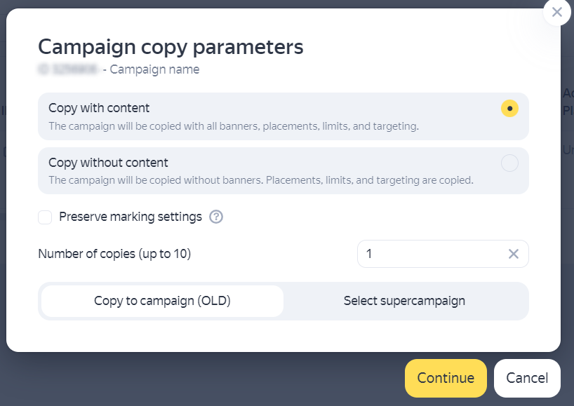 To learn more about copying, see Copy campaigns and Copy a banner. |