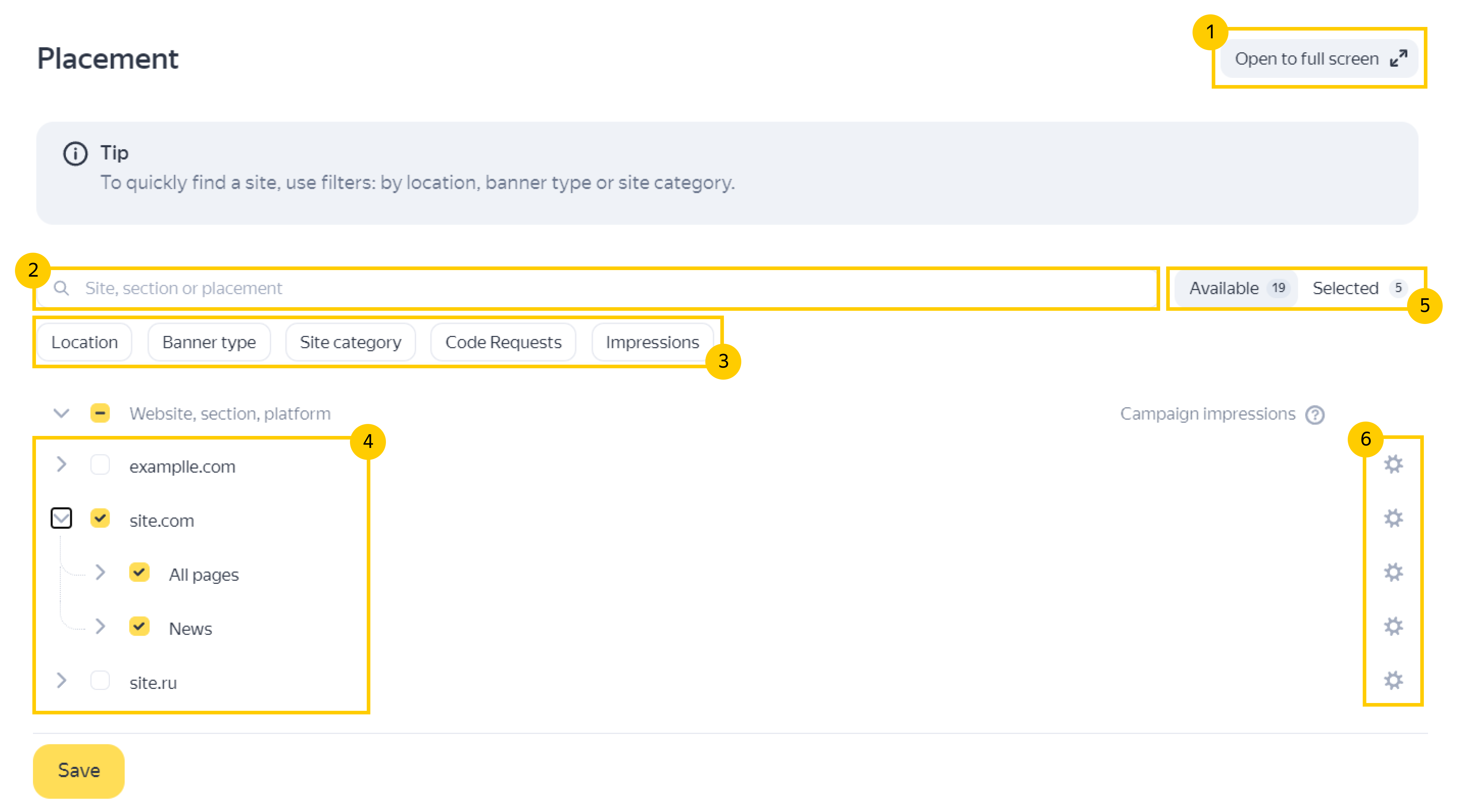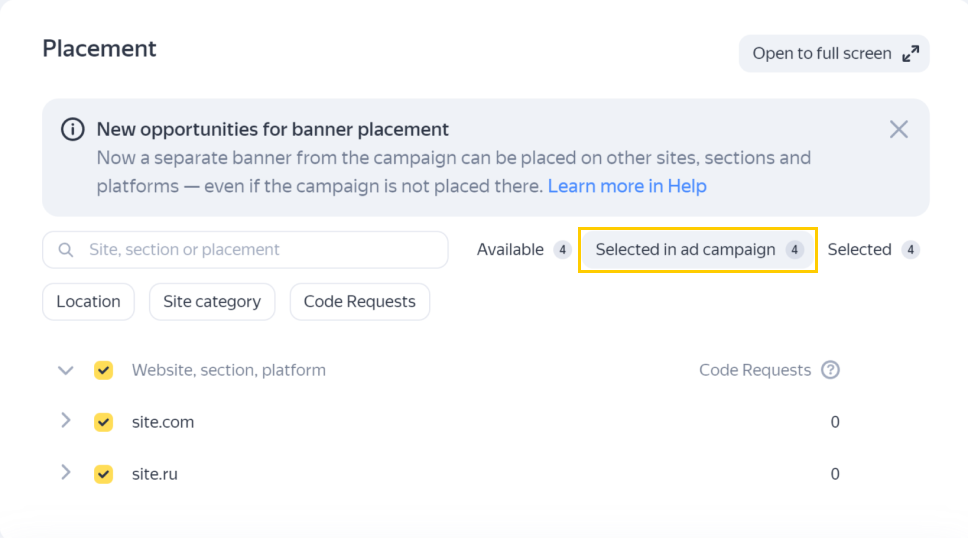 To learn more, see Campaign and banner placement. |