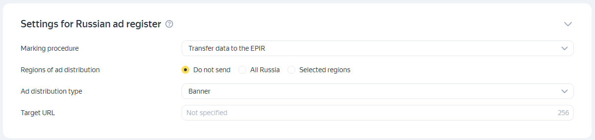 To learn more about the new settings, see Registering ad creatives in Adfox. |