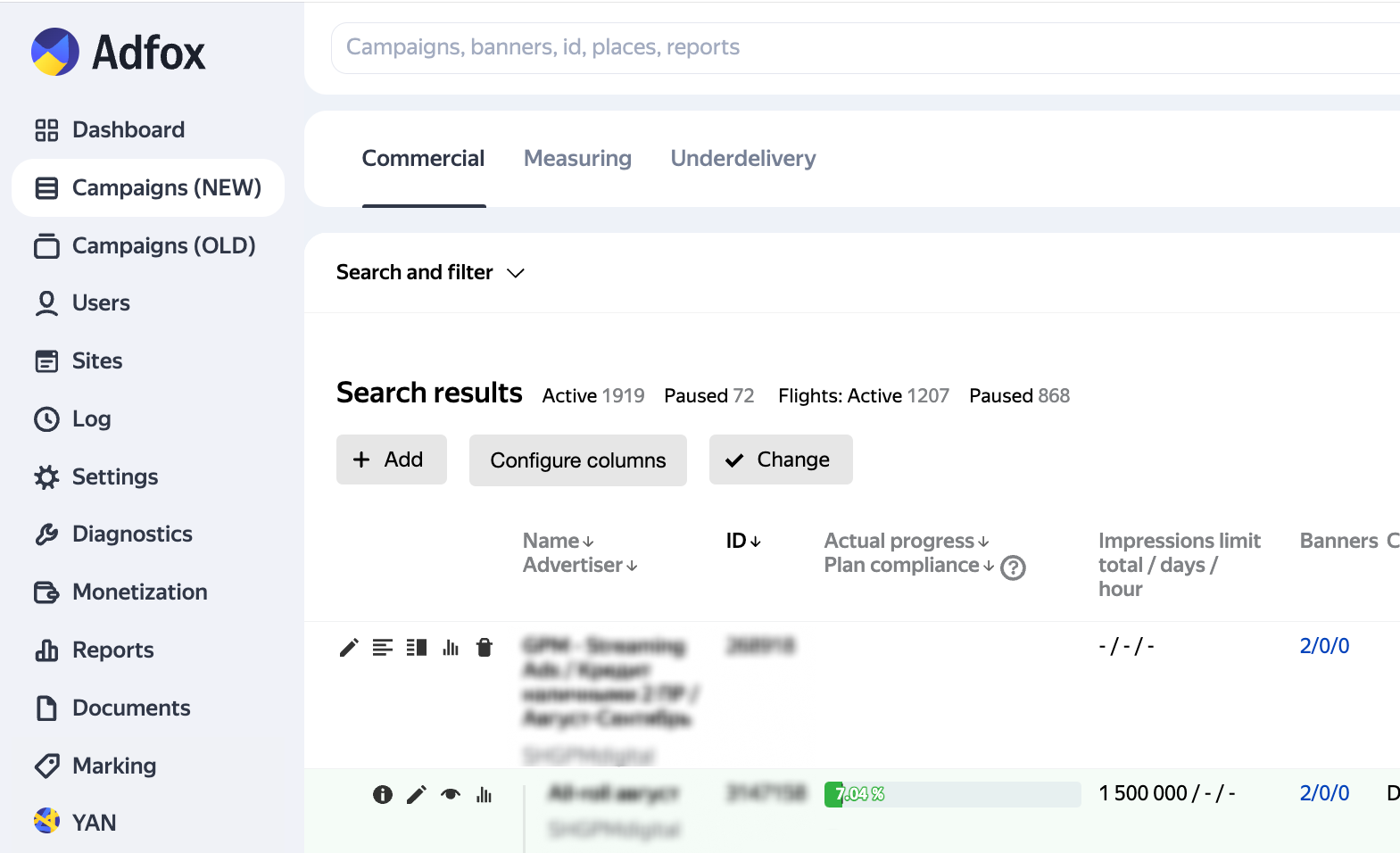 New ad running speed: “Frontloaded (Faster at Start)” The form for creating campaigns now includes a new ad running speed, “Frontloaded (Faster at Start)”. Impressions are distributed unevenly: the system schedules more impressions in the first days of placement. This reduces the risk of campaign underdelivery if the available inventory gets unexpectedly limited at the end of the campaign period. To learn more about the new speed, see Add a campaign. |