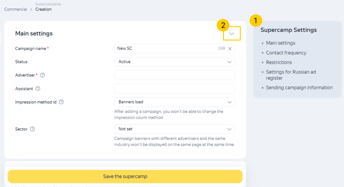 Adding a supercampaign All settings are now broken down into sections.