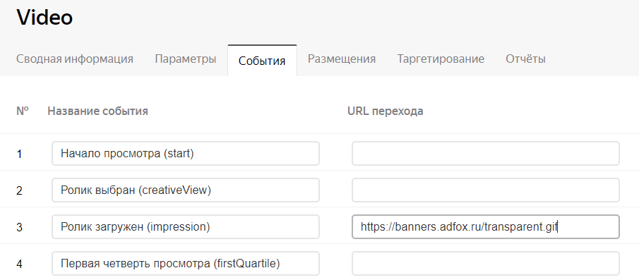 Ссылки для промера баннера в сторонних рекламных системах (при необходимости). После добавления баннера такие ссылки необходимо разместить на вкладке События в поле URL перехода для промеряемого события.