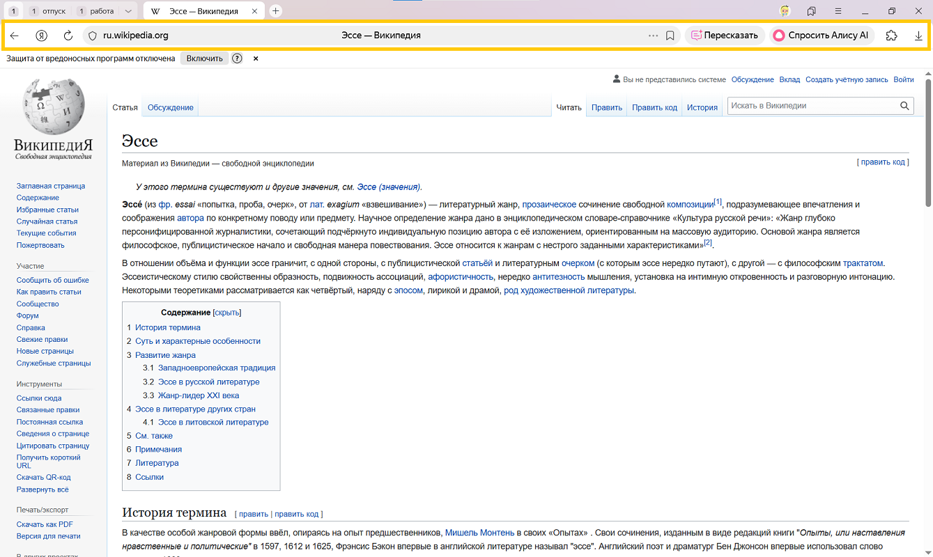 В Умной строке расположены значки, которые дают быстрый доступ к различным инструментам и информации о текущем сайте.