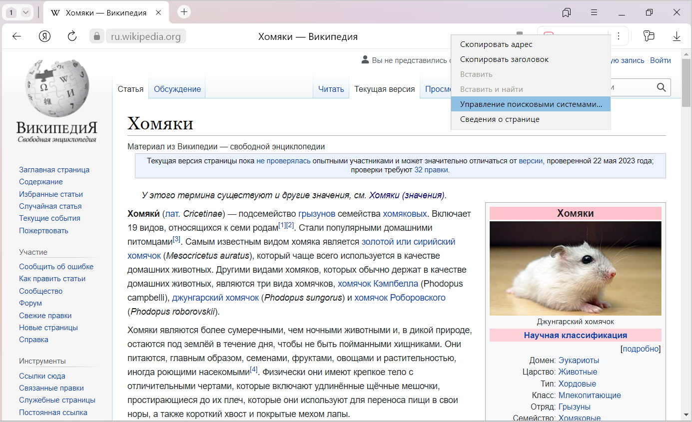 2. В контекстном меню выберите пункт Управление поисковыми системами...