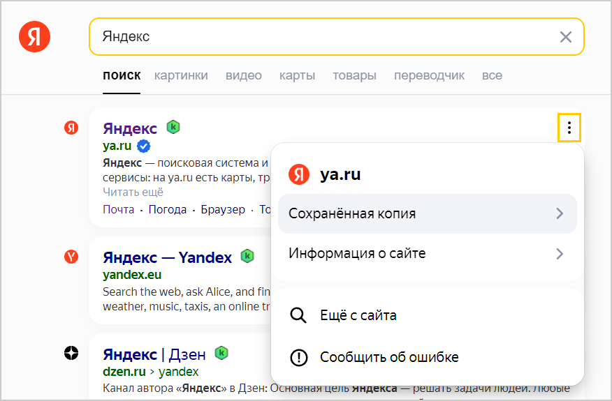 • Если страница существовала, но была недавно удалена, вы сможете просмотреть ее копию, сохраненную на Яндексе.