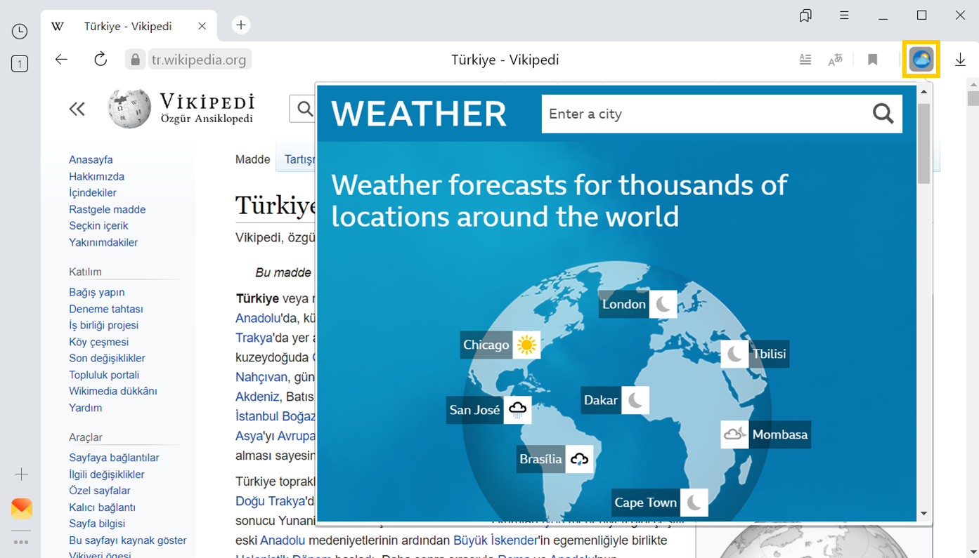 Bazı uzantılar etkinleştirildikten sonra Akıllı Satır'ın sağında simgeleri görünür. Eklenti işlevlerine erişmek için simgeye tıklayın:
