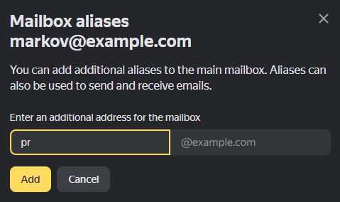 A mailbox in Yandex Mail can have multiple addresses: