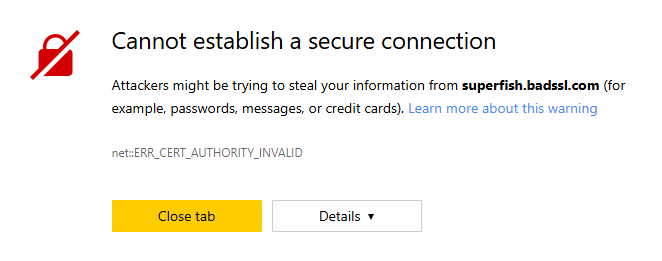 If you try to open an unsafe page, Yandex Browser blocks the connection.