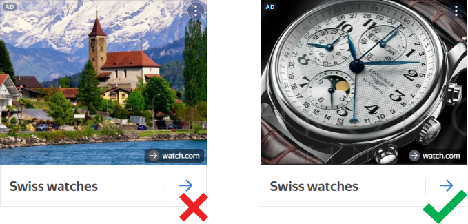 If you use logos, watermarks, and text on the image, we recommend that they don't take up more than 20% of the entire image. Material found on the product packaging, in app screenshots, or in the ad images are the exceptions to this rule.