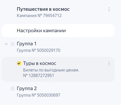A campaign appears in Yandex Direct after you create a channel promotion in PromoPages. If you run multiple campaigns for articles on PromoPages, all of them are shown as one campaign in Yandex Direct. You can view the promotion parameters or edit them only in your advertising dashboard. In Yandex Direct, you can only view the status of such campaign and its cost.