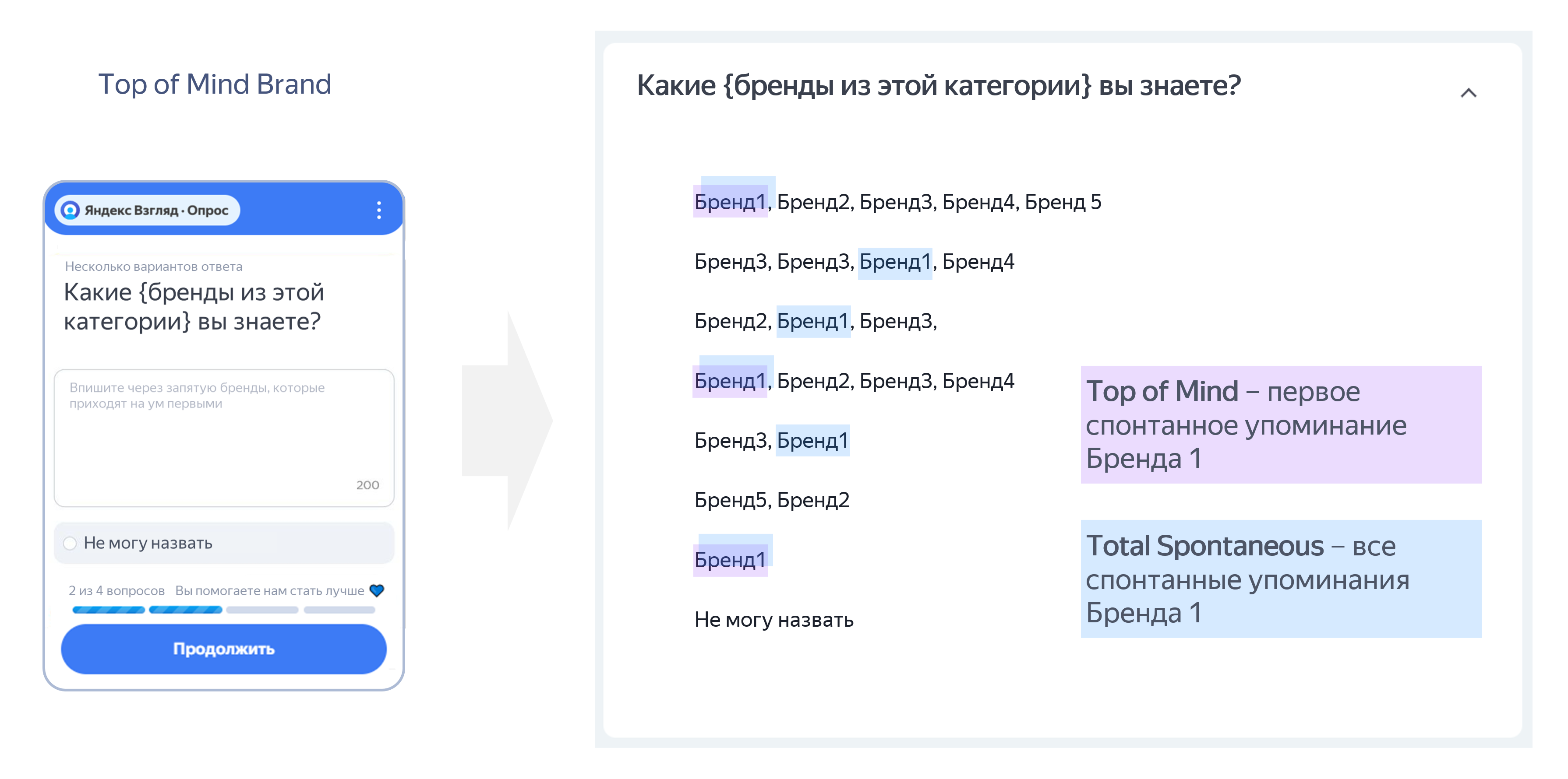 Top of Mind – первое спонтанное упоминание бренда.