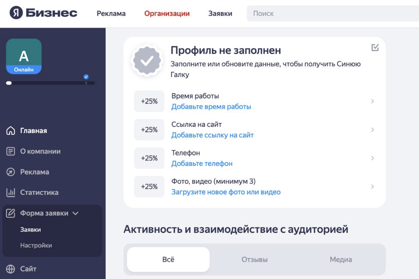 - добавить организацию из Яндекс Бизнеса;