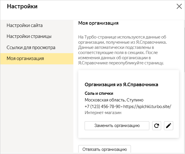 Если в вашей организации изменились телефон, электронная почта или название, вам также достаточно один раз обновить их в Яндекс Бизнесе — вручную менять данные на каждой Турбо-странице не придется.