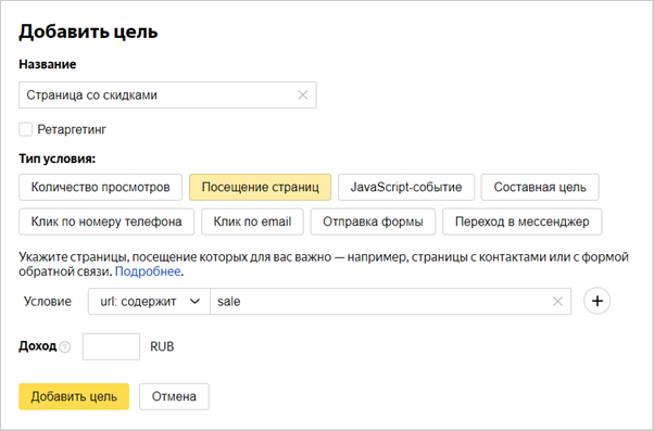 Как сделать целью просмотр страницы со скидками