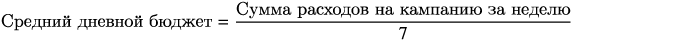 Ежедневный расход на кампанию в среднем за календарную неделю.