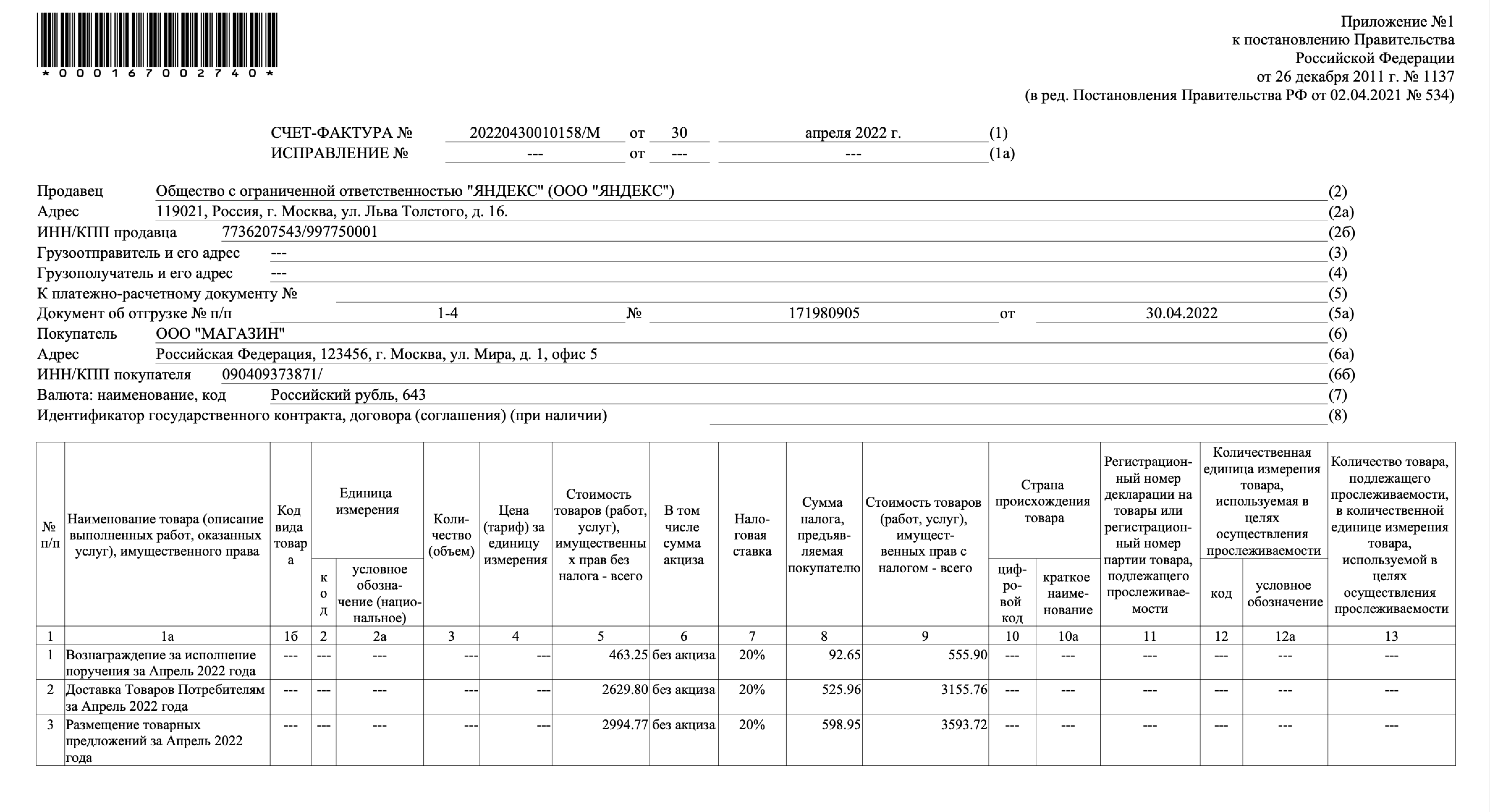 The invoice contains the same information as in the act of services rendered. It is more convenient to use the act for accounting and analysis.