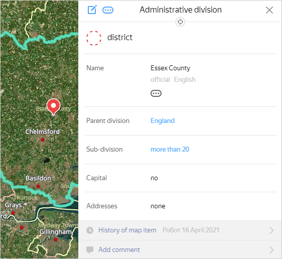 ) can not be created or edited on Yandex Map Editor. They function solely as items that lower-level administrative divisions can be attributed to.