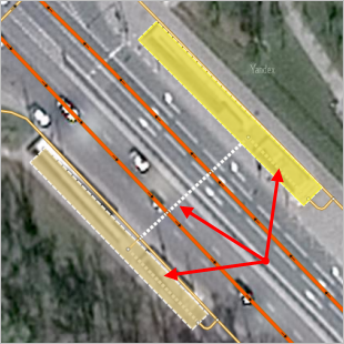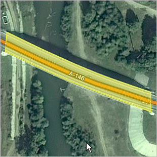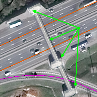 When drawing bridges and above-ground pedestrian crossings, pay attention to the possible displacement in the satellite image of the bridge surface or passage crossing from its position on the map that can be attributed to its elevation above the surface (see Section2.3.1.4. Bridges).