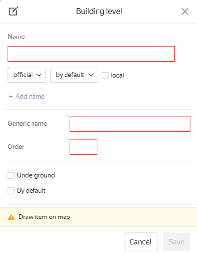 Name — the name of the building level, which can be a number (for example, -1, 2) or a combination of letters and numbers (for example, P1).