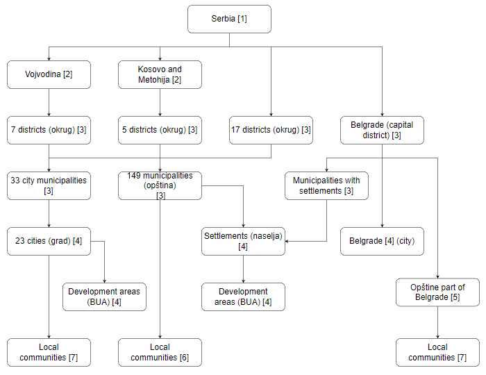 See the picture for Serbia's administrative division borders (the administrative division's subdivision level is shown in square brackets).