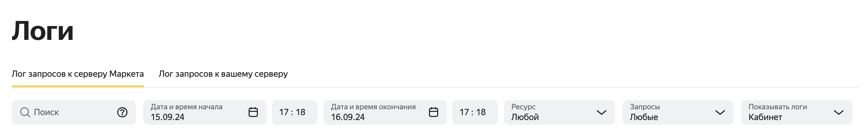 В разделе хранятся логи, в которых вы можете посмотреть, какие запросы выполнялись к API магазина и к Маркету: