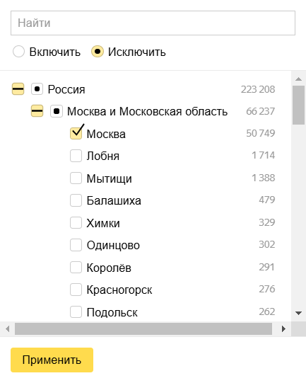 Так, отчет будет содержать данные по Московской области, без учета Москвы.