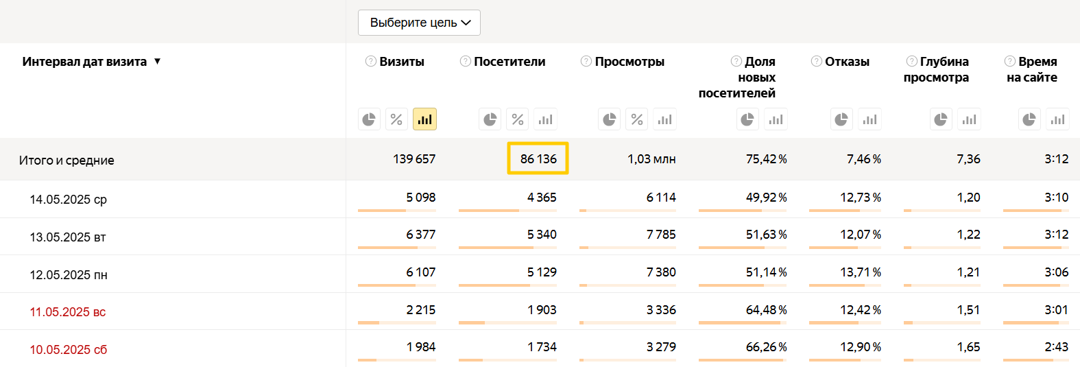 Узнать количество посетителей, которые достигли цель