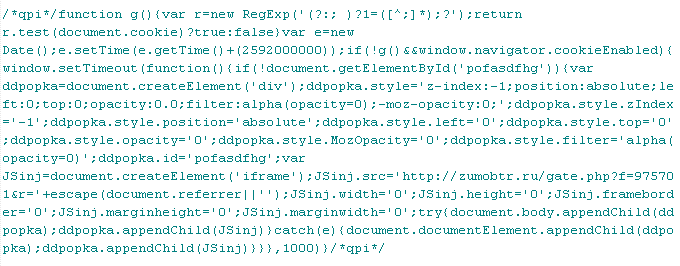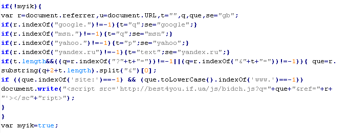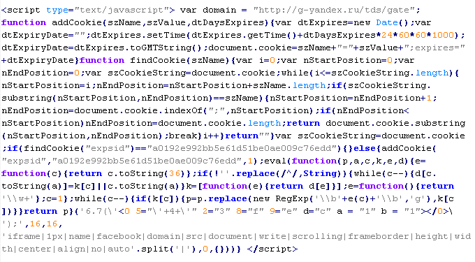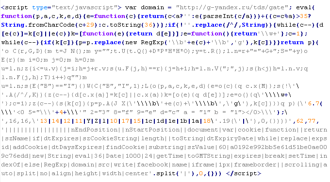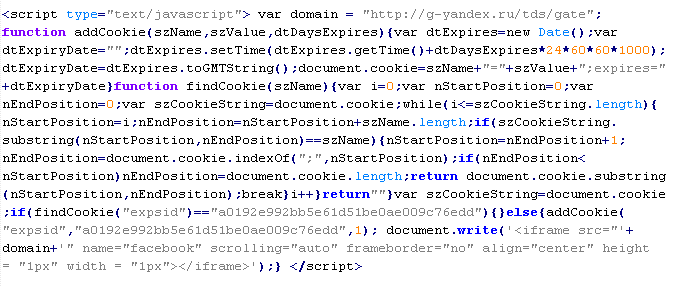 Example of malicious code that is issued the verdict Yandex/MalTds: