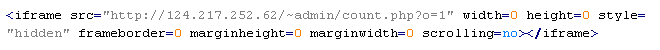 This verdict means that the page contains an <iframe> tag with the width and height attributes set to values from 0 to 2, or JavaScript code that, when executed, adds this tag to the page. The src attribute of the tag contains a domain name that malware is distributed from. The tag contains additional attributes: frameborder=0, style="VISIBILITY:hidden", style="display:none".