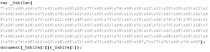 Example of malicious code that is issued the verdict Troj/JSRedir-HA: