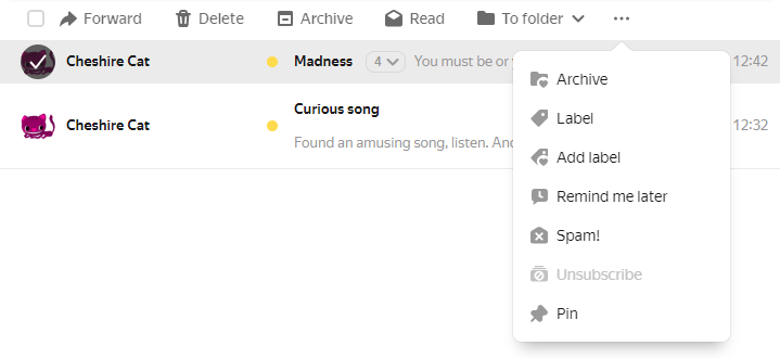 This will help our anti-spam filters work better in your mailbox. You may need to make several complaints about similar unwanted messages for it to work. Learn more about how Yandex Mail fights spam in Yandex Mail Help.