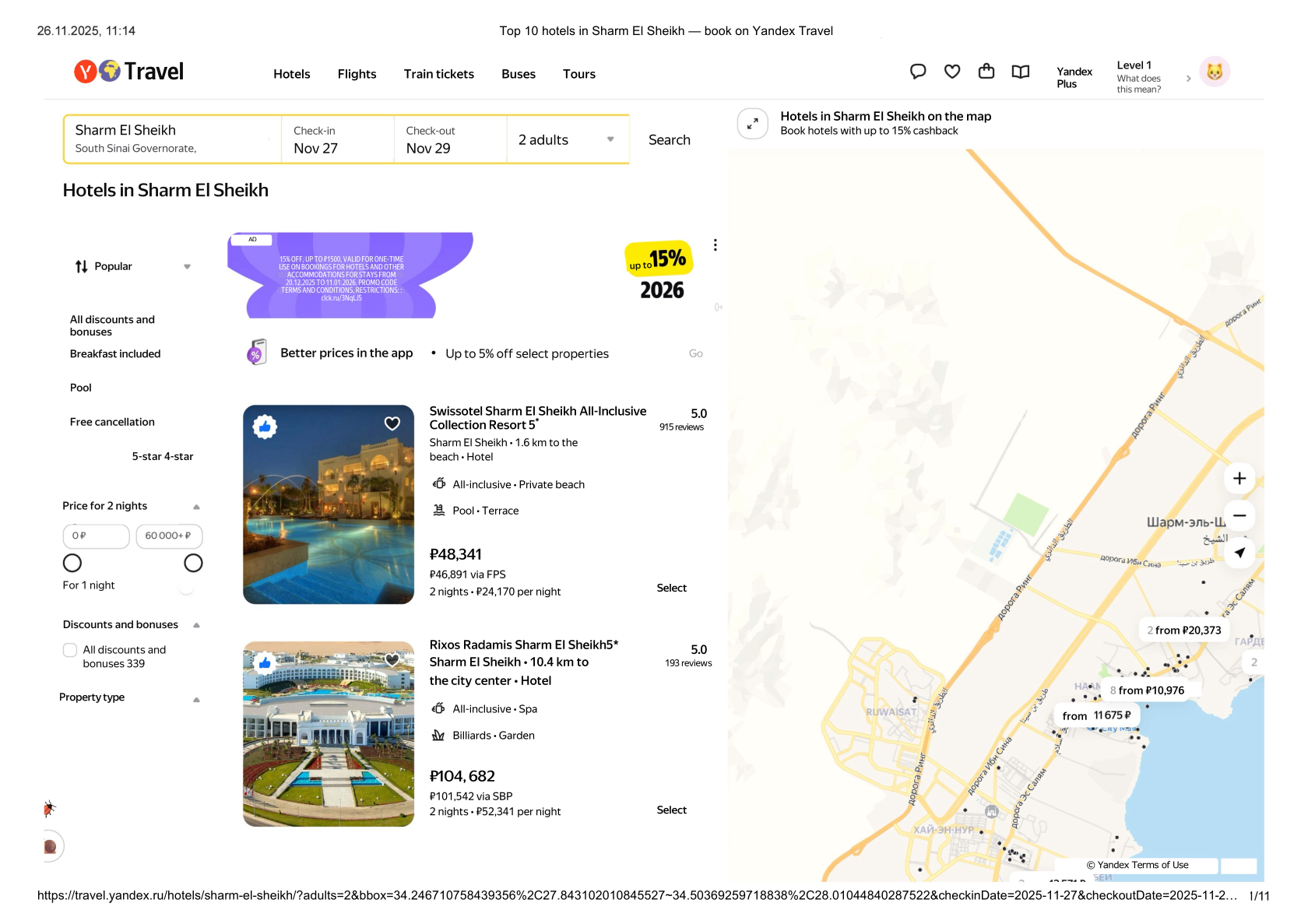Rixos Sharm El Sheikh and Rixos Premium Seagate hotels entered the top 3 of all hotels in Egypt due to a x6 increase in bookings. Rixos Radamis Sharm El Sheikh, thanks to cooperation with Yandex, improved its profitability ranking position in the Yandex Travel rating from 90st to 6th place and also achieved x6 growth in bookings.