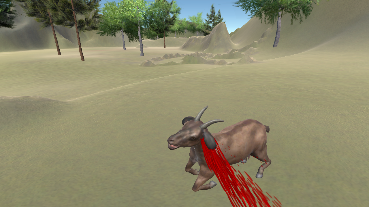 Realistic depiction of a wounded animal and focus on bright red blood. |