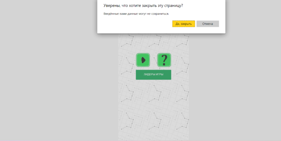 저장되지 않은 진행 상황에 대한 브라우저 알림이 표시됩니다. |