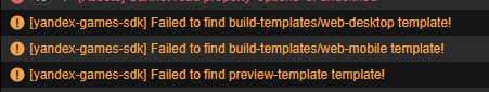 이 문제를 해결하려면, Yandex Games SDK 섹션을 방문해 템플릿 생성을 선택하여 플러그인이 필요한 템플릿을 자동으로 생성하게 하세요. 또는 직접 작성할 수도 있습니다.