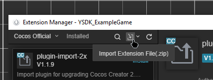 Cocos Store에서 직접 플러그인을 설치할 수 있습니다.