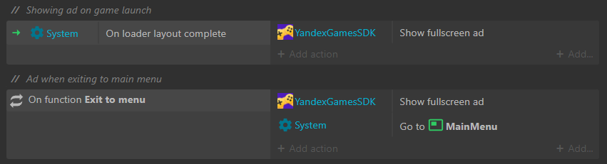 Bạn có thể gọi khung quảng cáo toàn màn hình bằng hành động Show fullscreen ad. Thường thì loại quảng cáo này không cần bất kỳ logic bổ sung nào ngoài việc gọi.