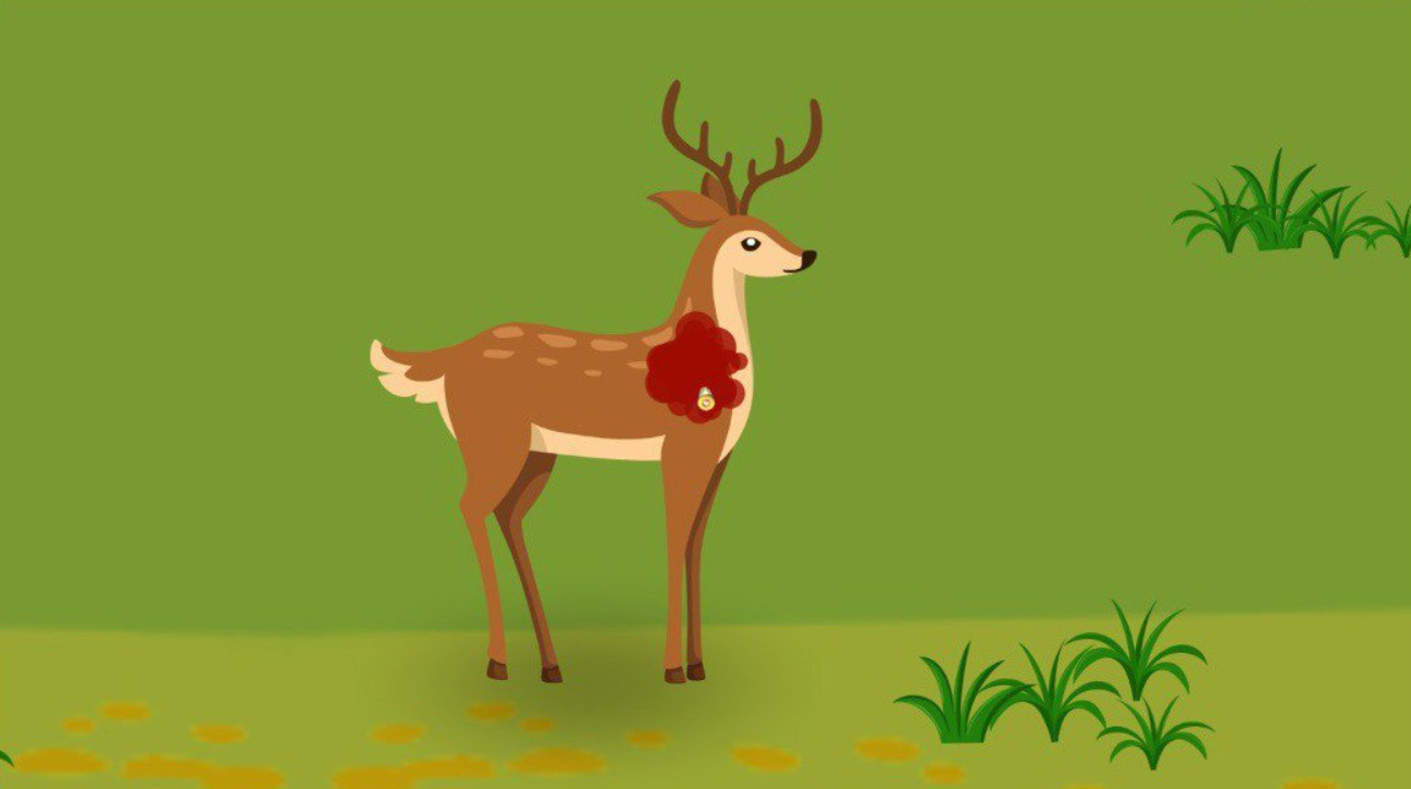 图形化但易于识别的动物和小的图解血液喷溅。看起来不现实,没有强调杀害动物。 |