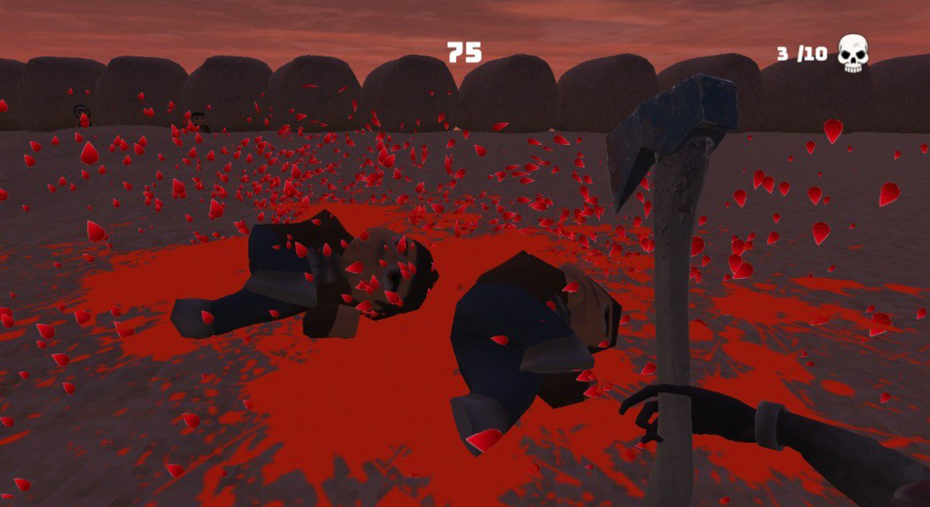 角色虽图形化,但类似于人形。截图上的血迹显眼。 |