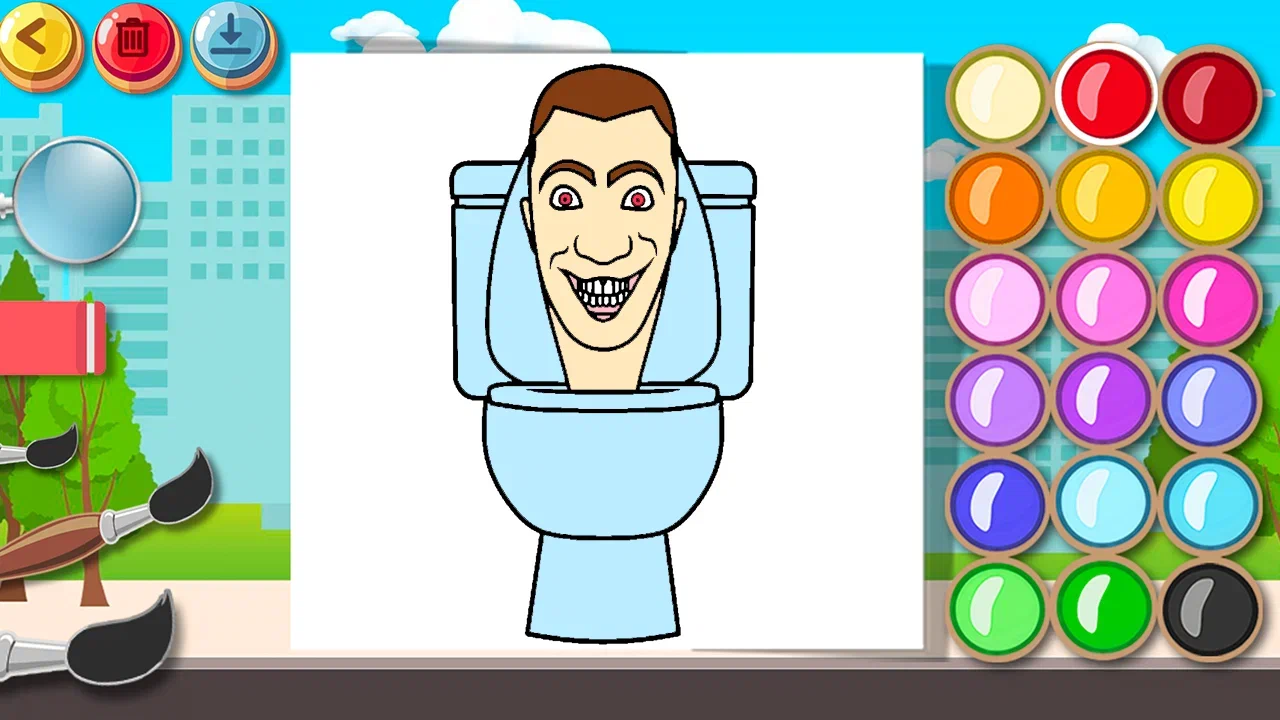 名称:「斯基比迪厕所着色」 关于游戏:「介绍以"斯基比迪厕所"为主题的酷炫着色游戏。在这个游戏中,您将遇到著名的斯基比迪和摄像头角色!」