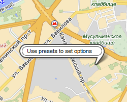 Before an object is displayed on the map, the API first attempts to determine which options were explicitly set for the object. If there aren't any, the API looks for presets defined for the object. If presets weren't defined, options are searched for moving up the hierarchical tree to the map level.