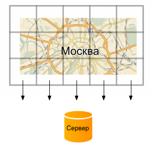Data is requested from the server for a separate tile by its number. The request passes the parameters x and y, which are the tile numbers on the x and y axes, respectively.