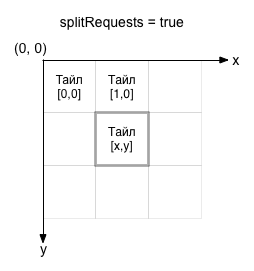 The manager supports two data loading modes: it can request data for the entire viewport at once, or for separate tiles. The data loading mode is set on the client side when creating the manager, using the splitRequests parameter. This parameter can take the value true or false (default).
