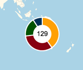 Обратите внимание, что в центре диаграммы отображается не суммарный вес секторов, а число меток, входящих в состав кластера. Чтобы показать суммарный вес, необходимо пройтись по всем полям weight и сумму весов указать в опции iconContent.